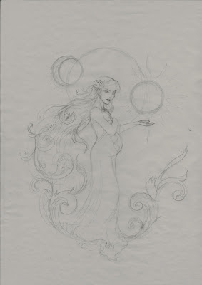 What I’ve posted here are three very rough sketches for the opening chapter of KALONA’S FALL. I’ve begun the novella with a once upon a time creation myth, explaining how the HoN world, as well as Erebus, Kalona, and Nyx came into being. Aura and I decided the illustration would personify the earth as a beautiful pregnant woman, with the moon and sun as her companions. These are my favorite three rough sketches. I can’t wait to see the finished illustration!